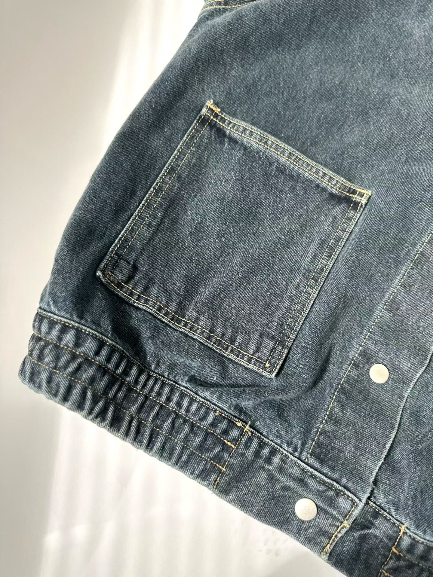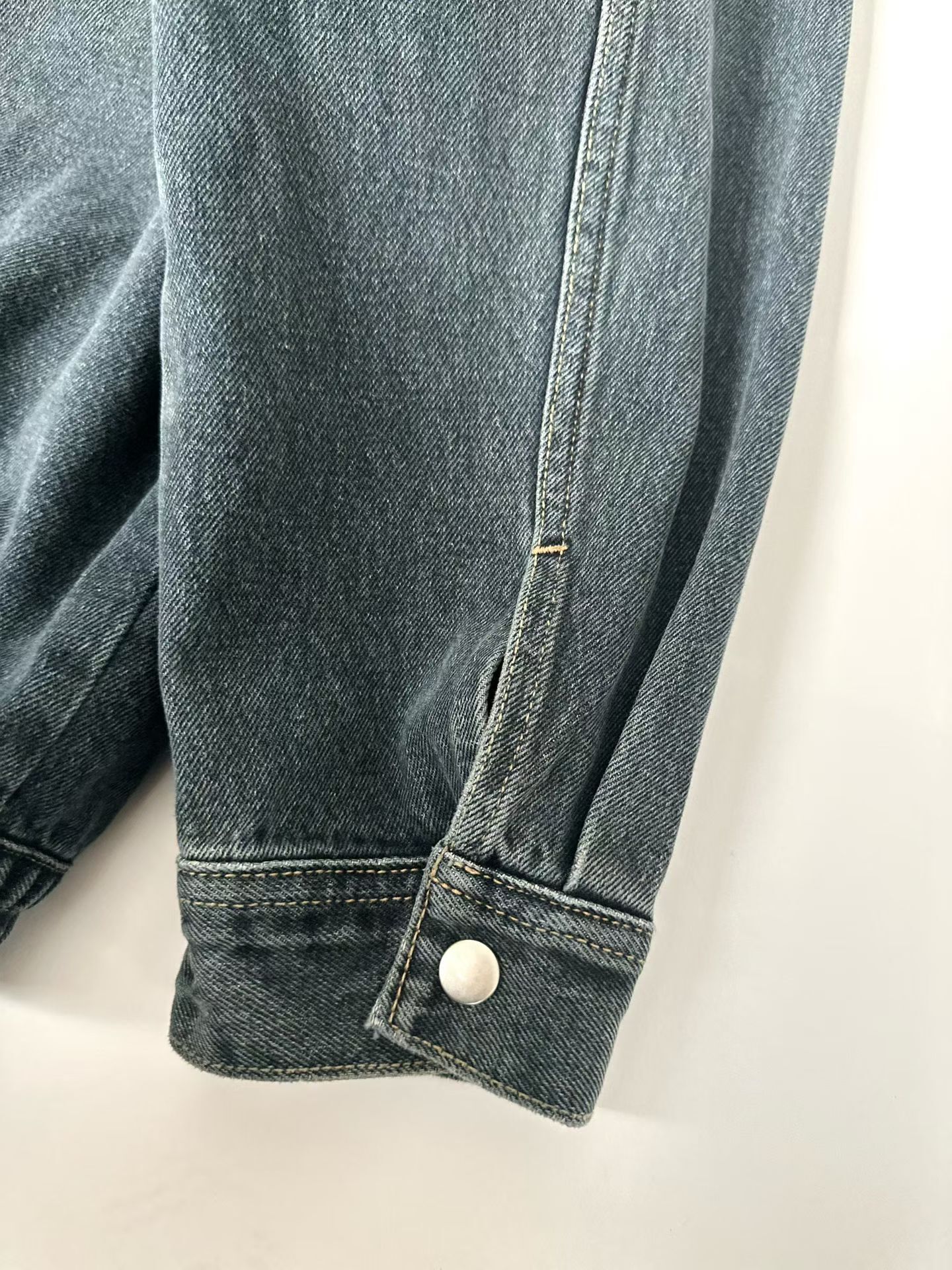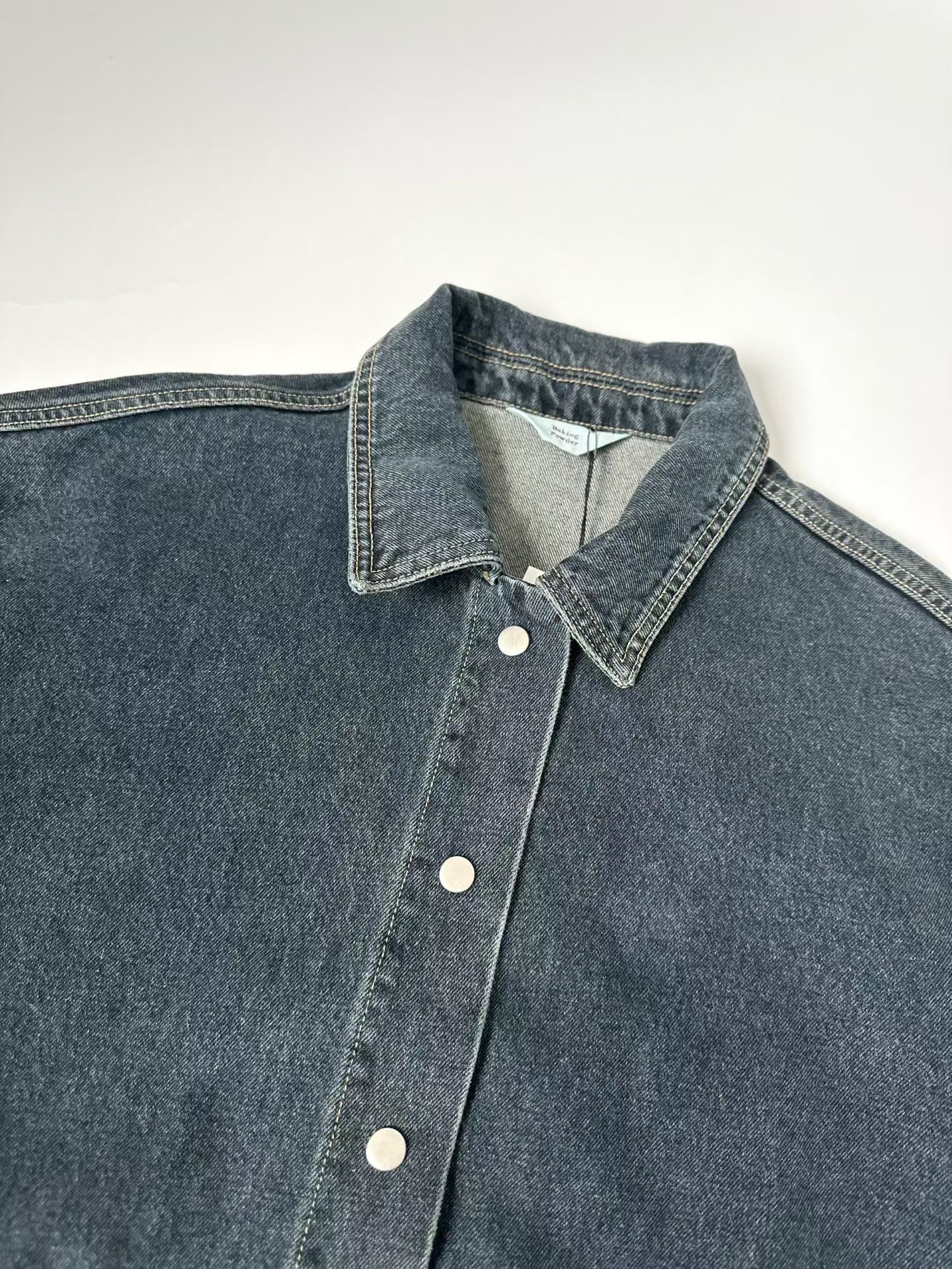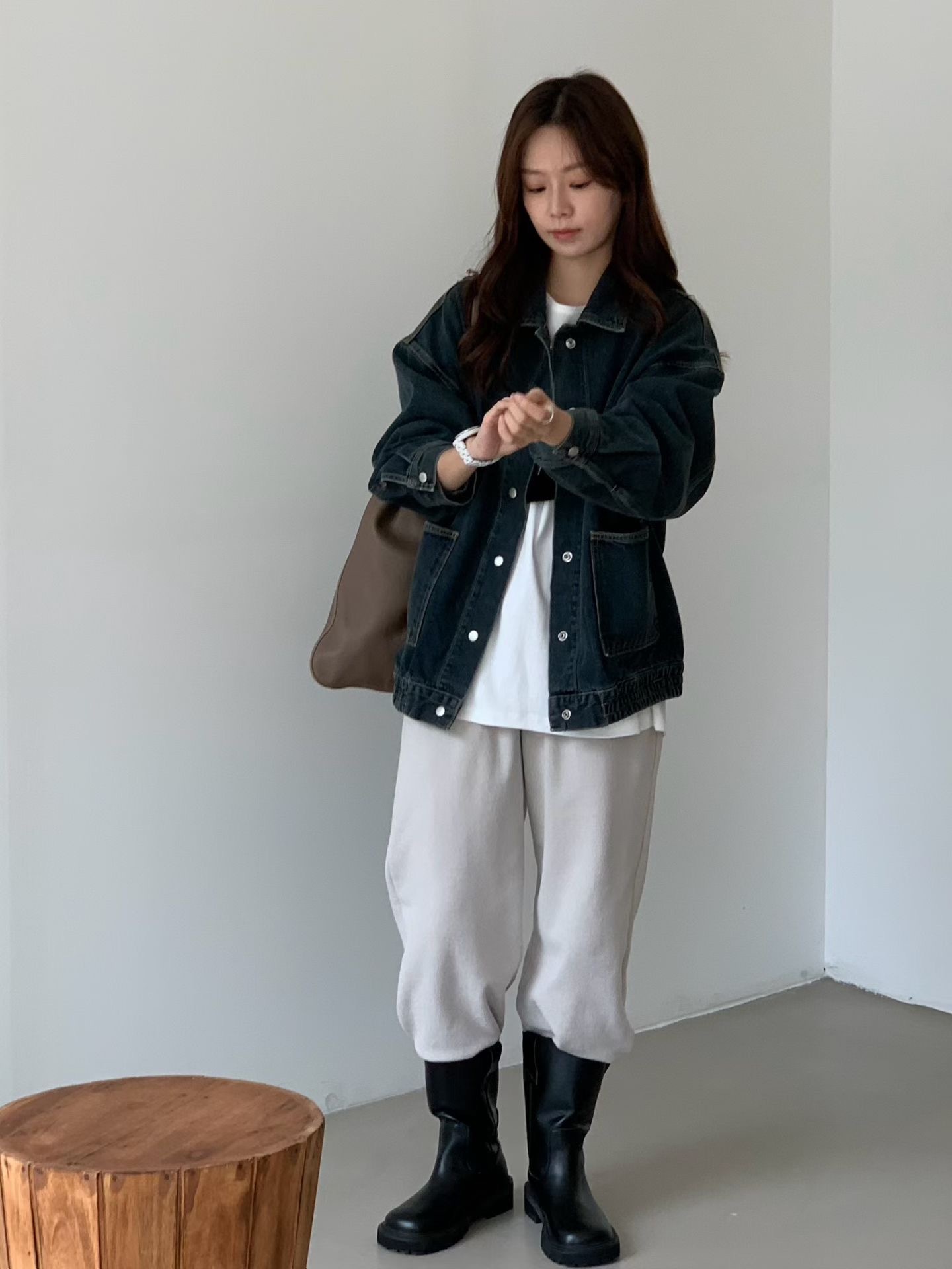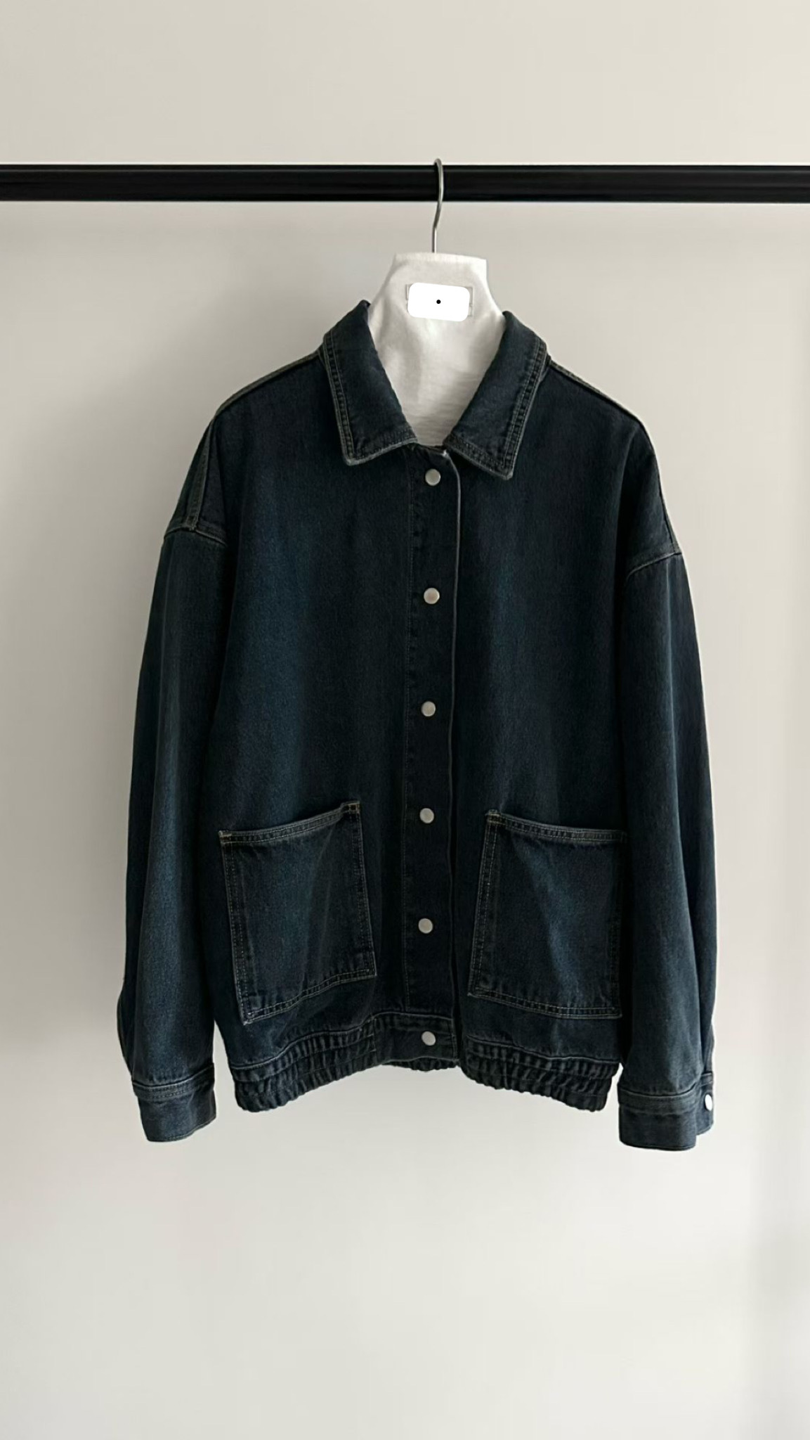 肩膀落肩 有點慵懶隨性的感覺 是偏深一點的牛仔藍色