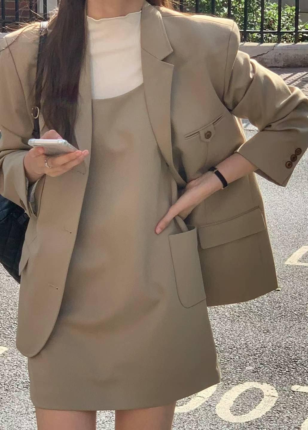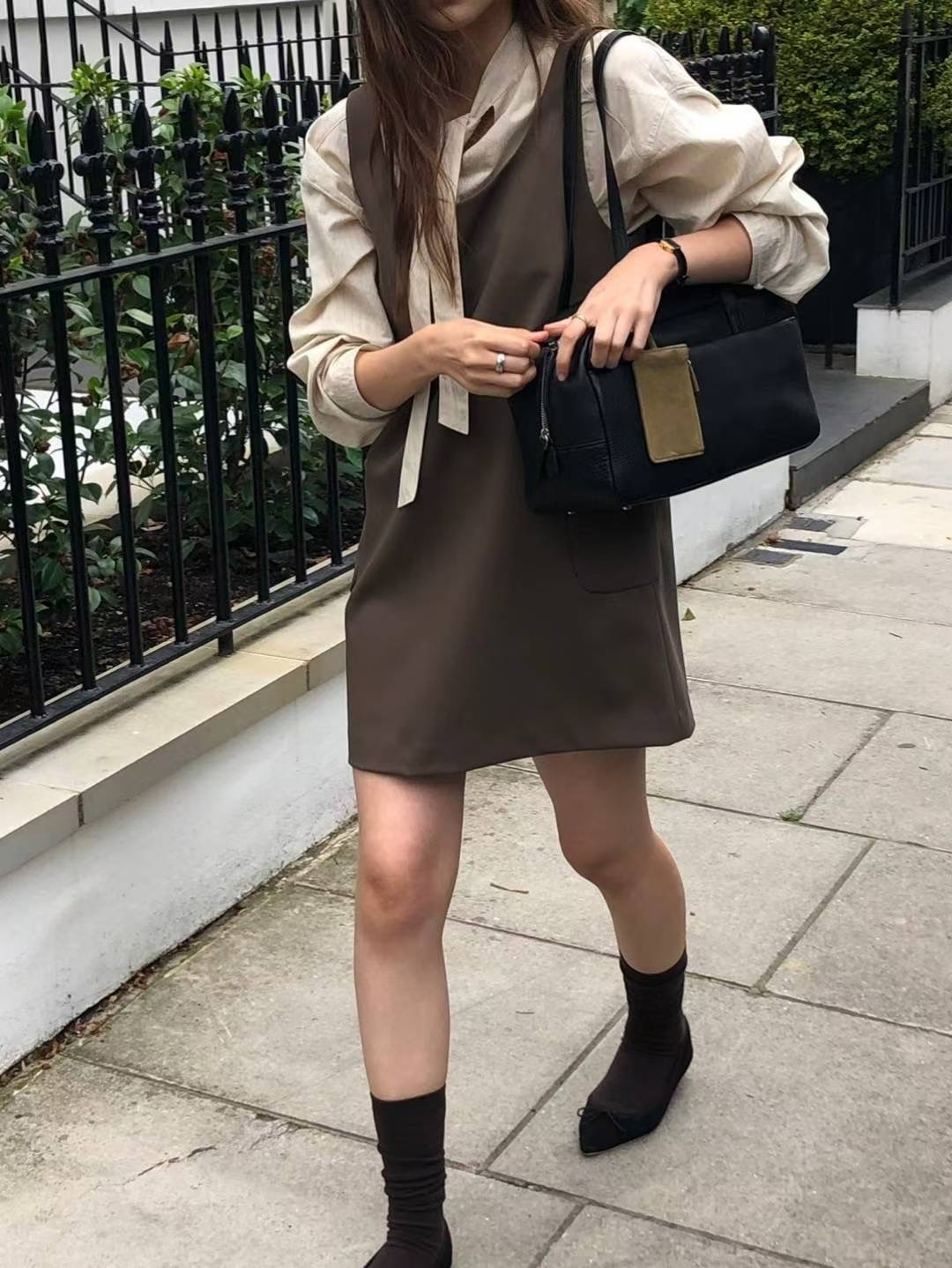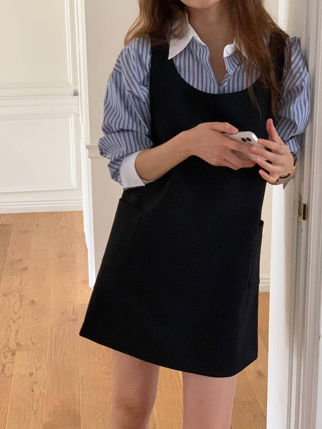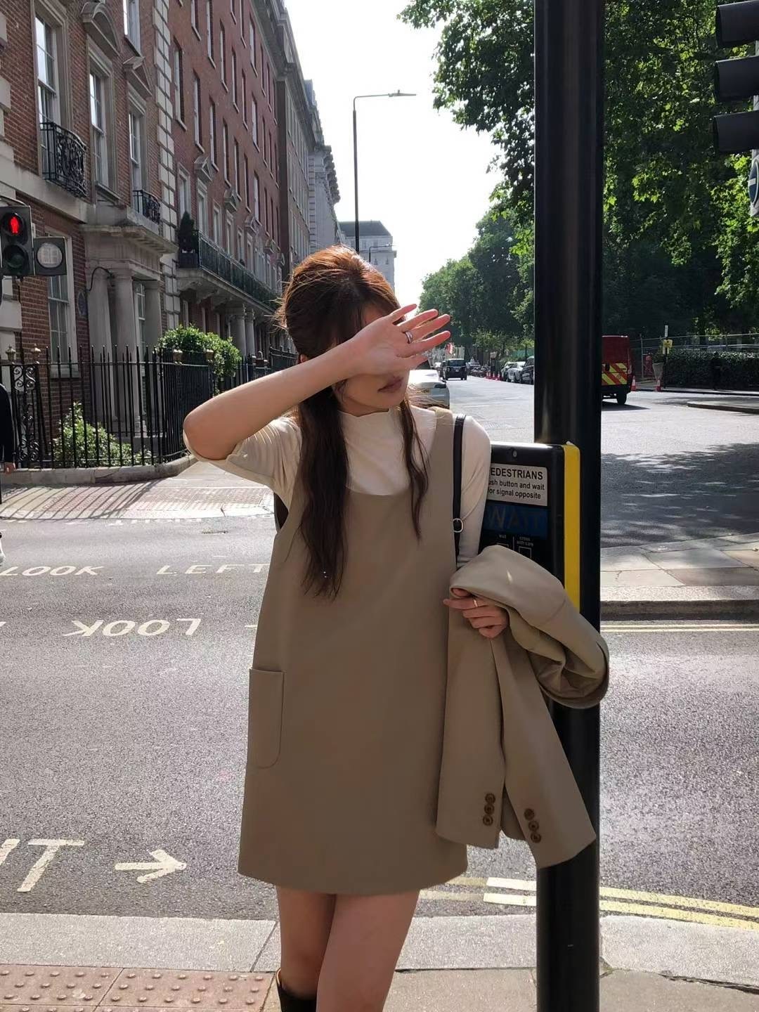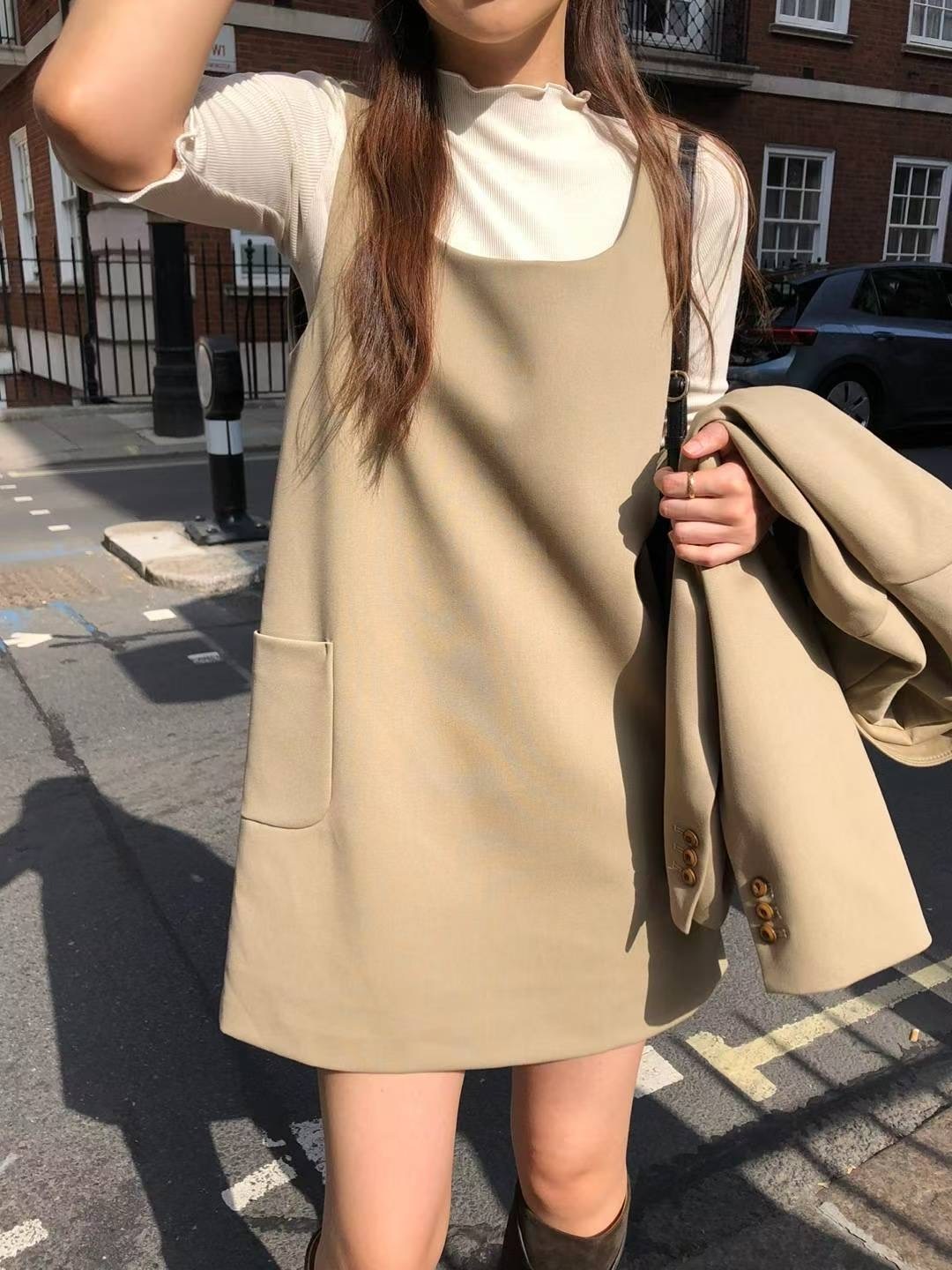 簡約A字型口袋連身裙