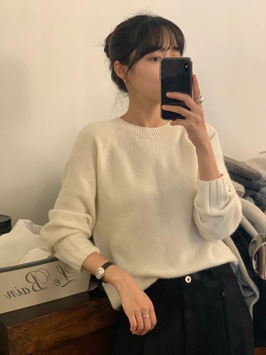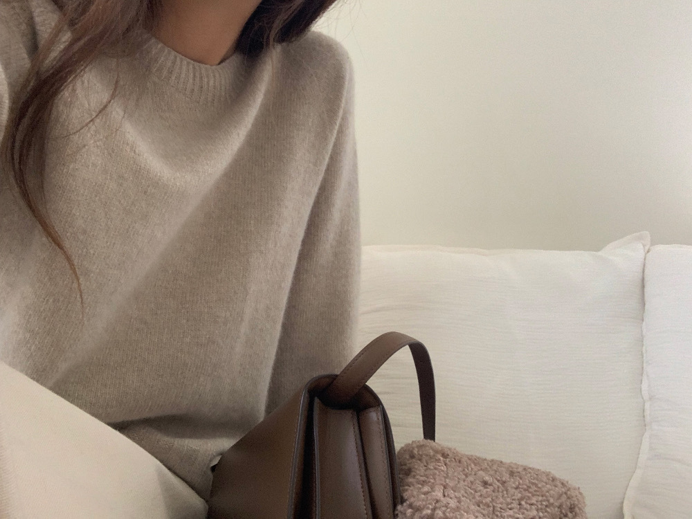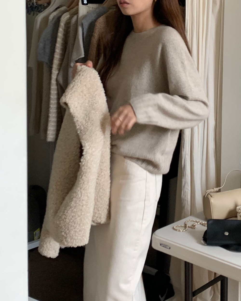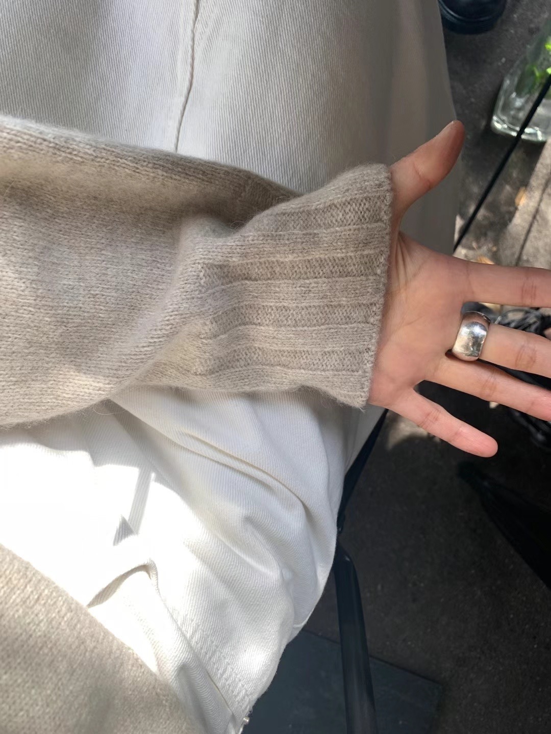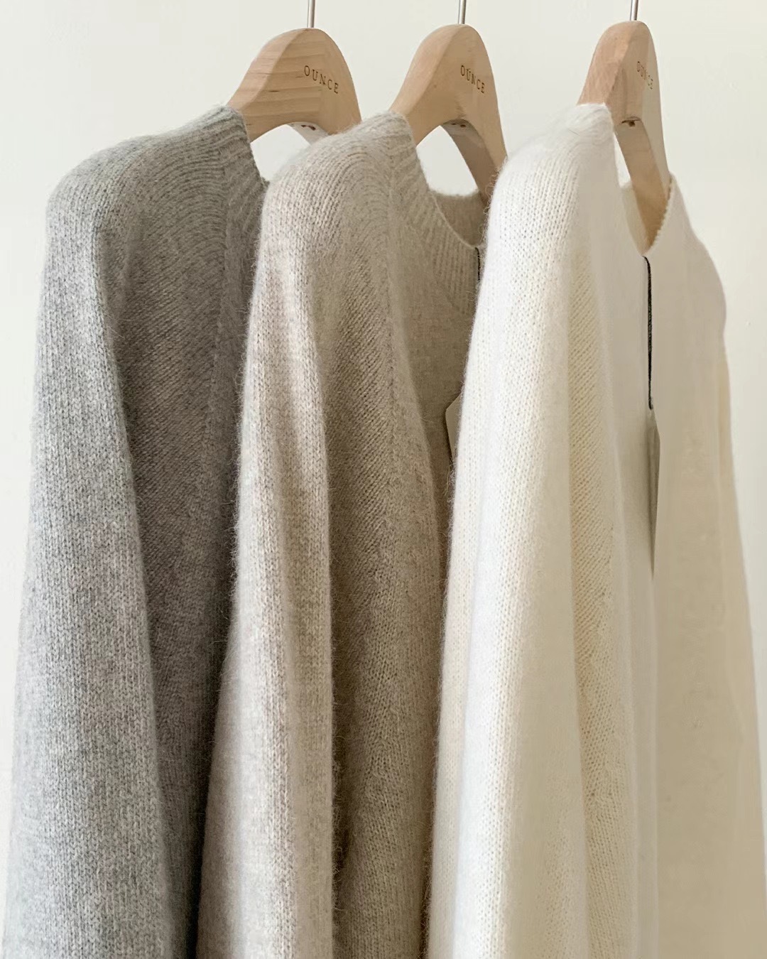 (有現貨)basic wholegarment浣熊毛xCashmerexMerino收邊圓領針織寬鬆毛衣