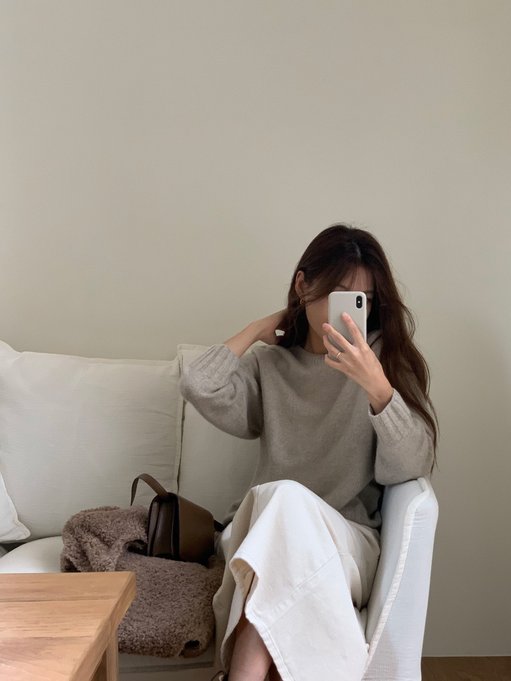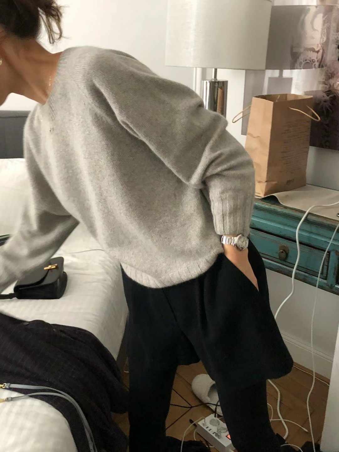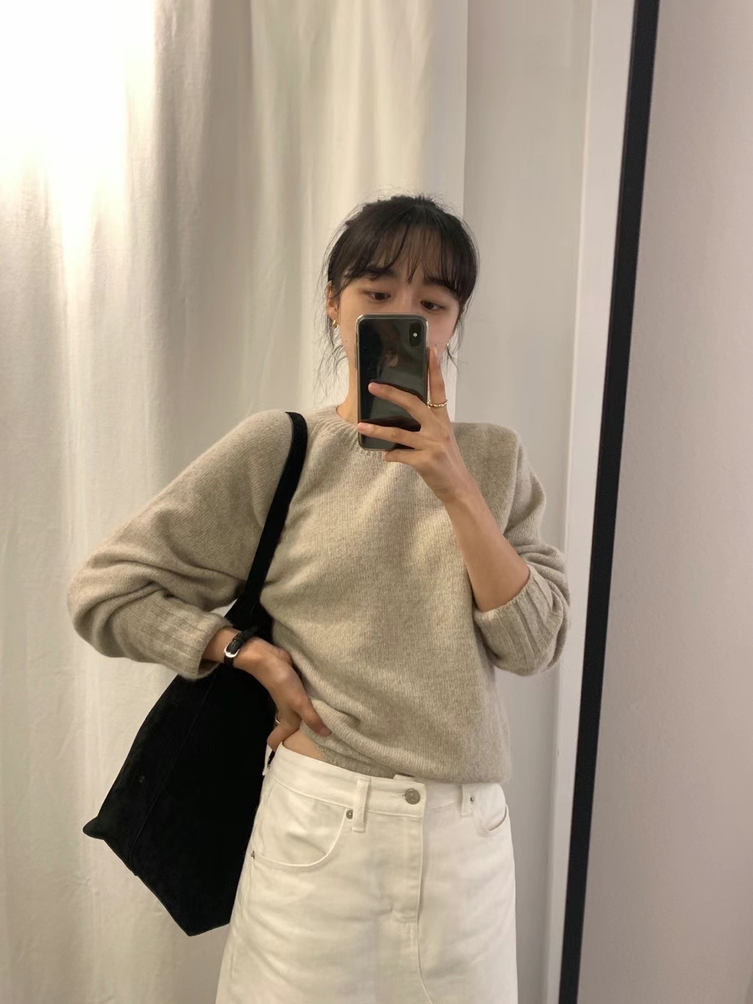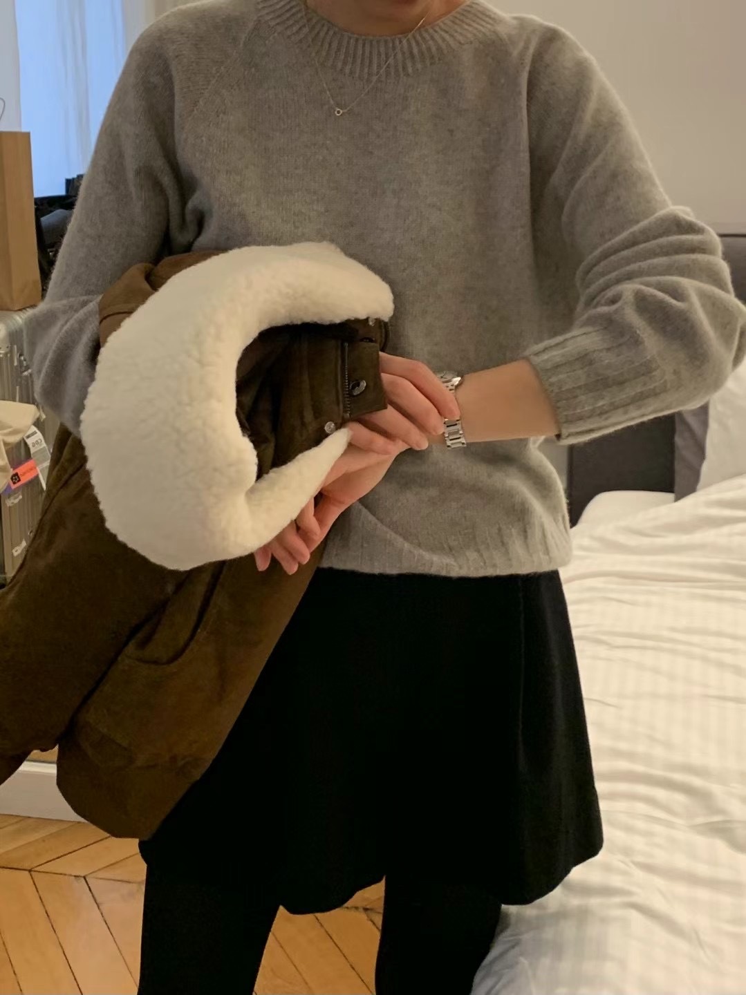 (有現貨)basic wholegarment浣熊毛xCashmerexMerino收邊圓領針織寬鬆毛衣