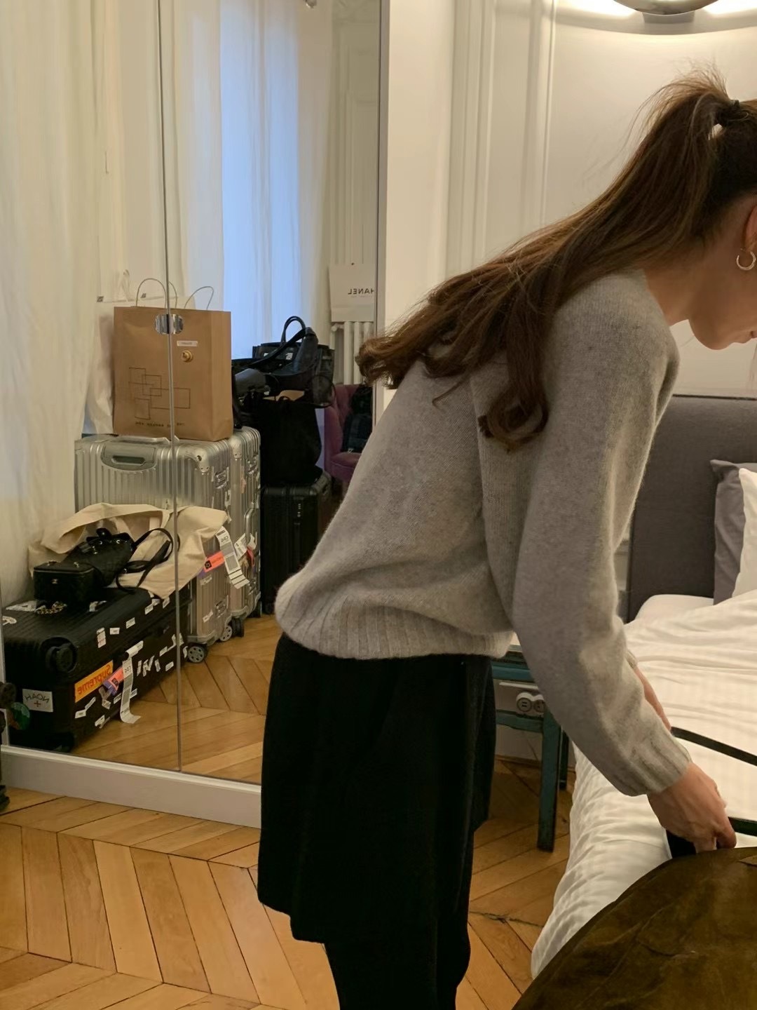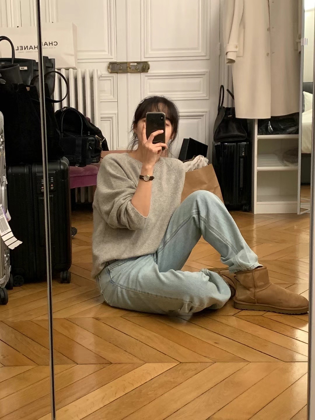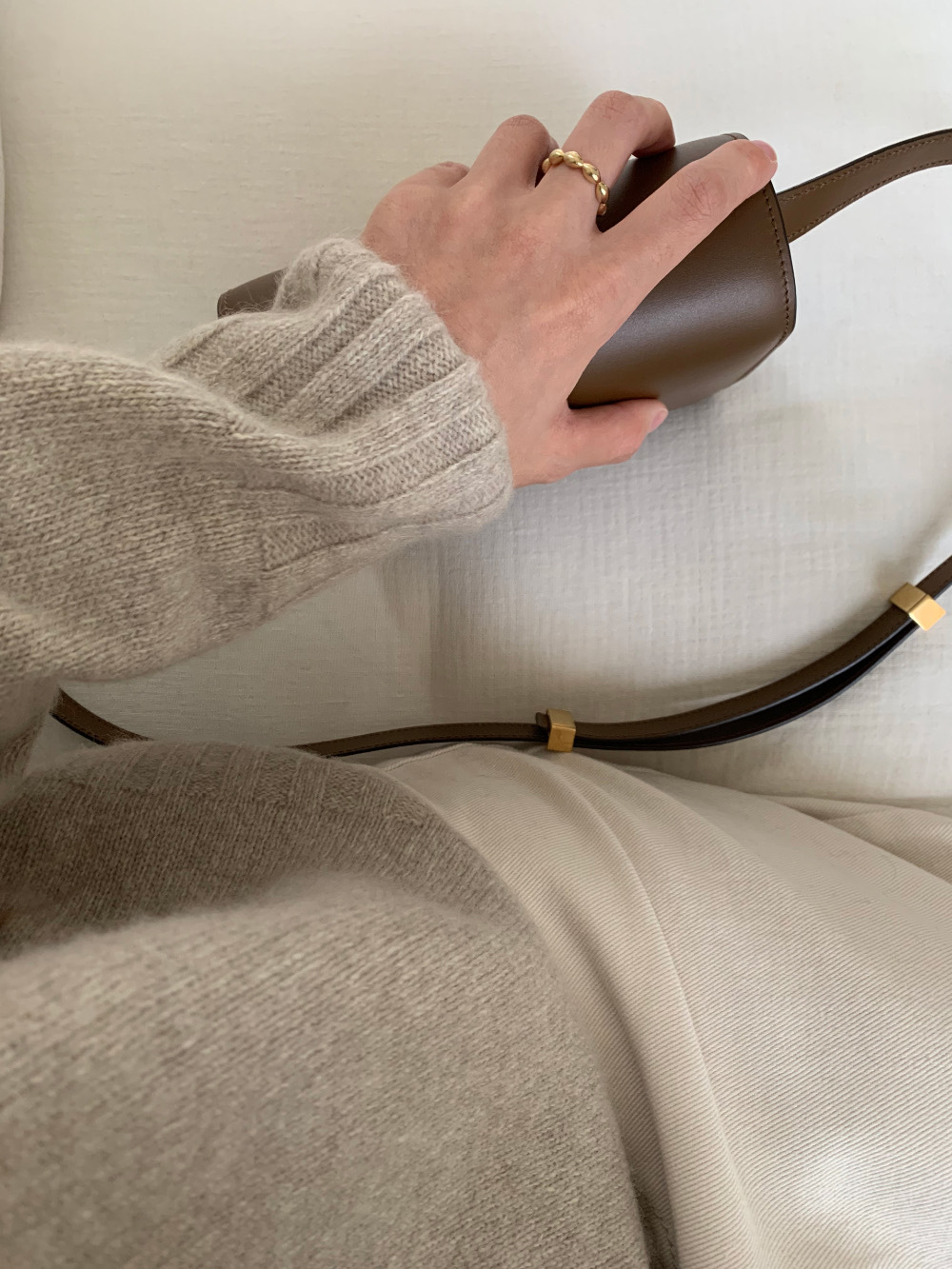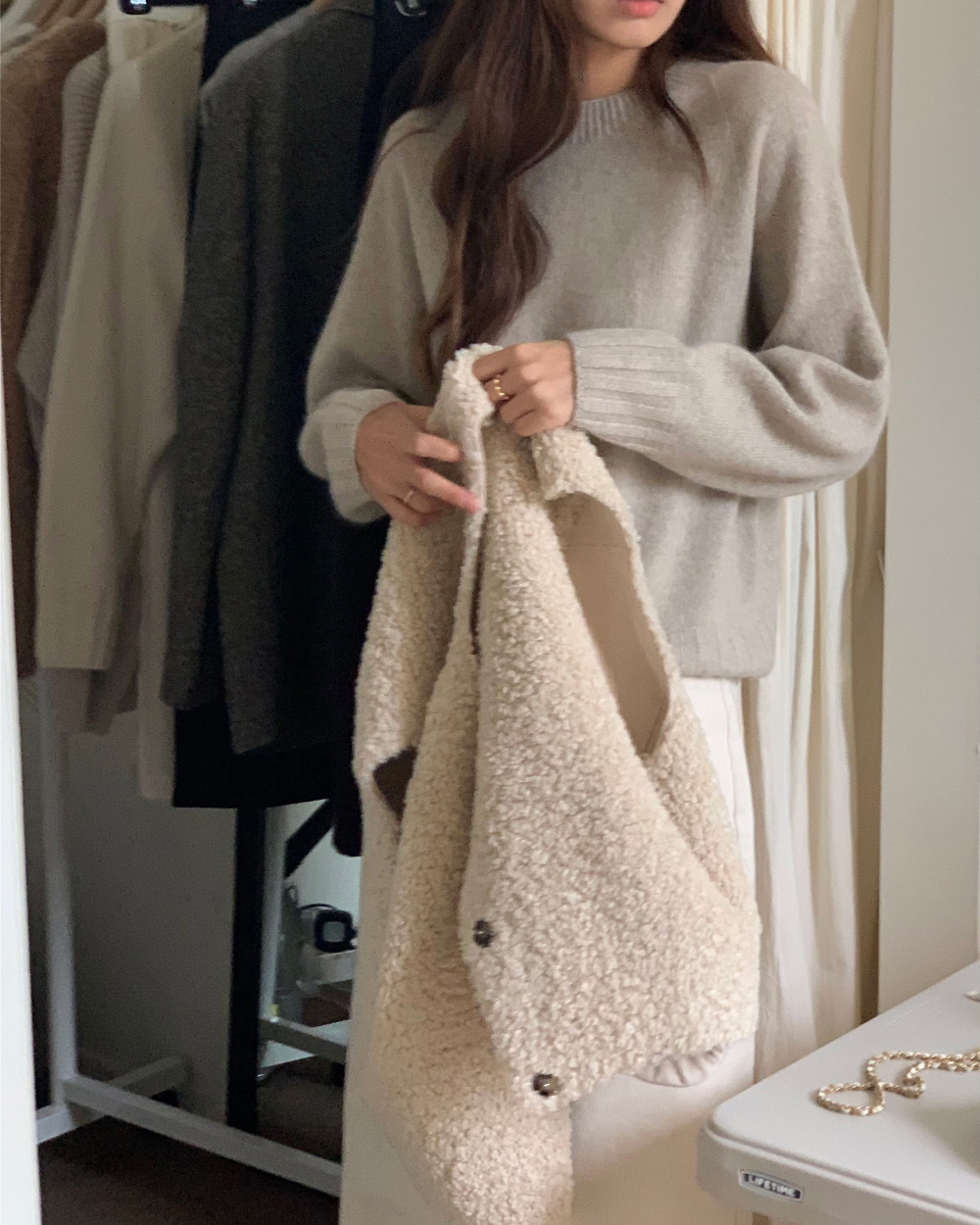 (有現貨)basic wholegarment浣熊毛xCashmerexMerino收邊圓領針織寬鬆毛衣