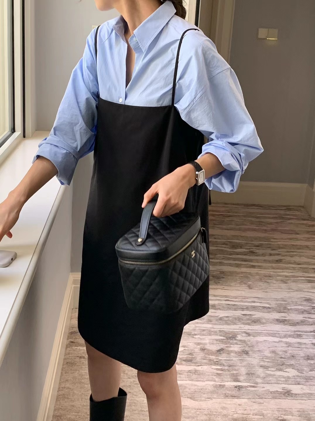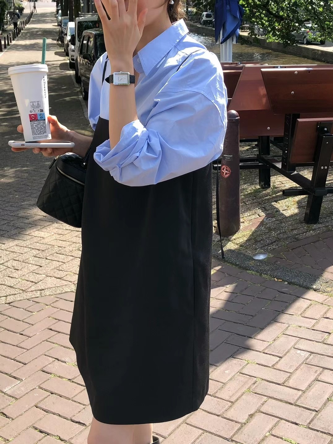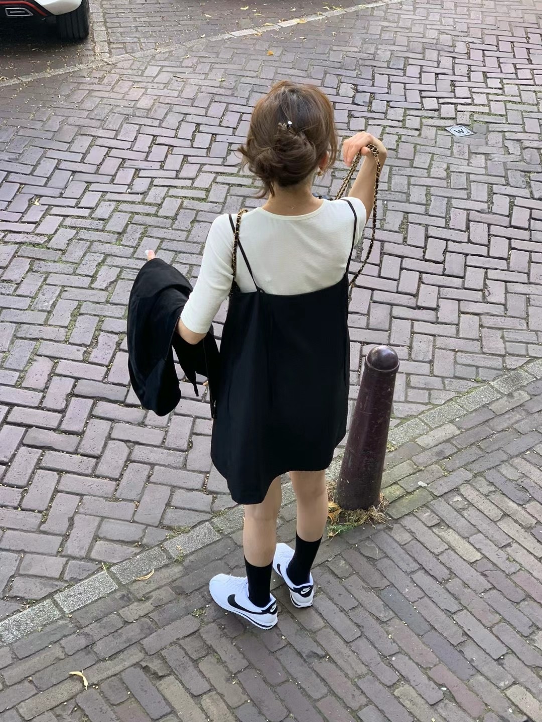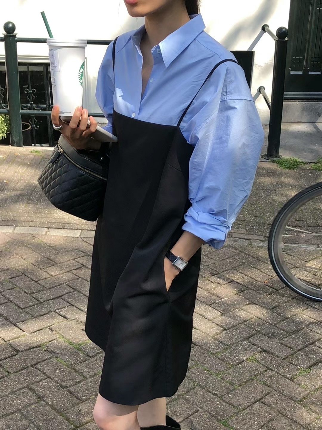 (有現貨)後綁帶黑色吊帶裙