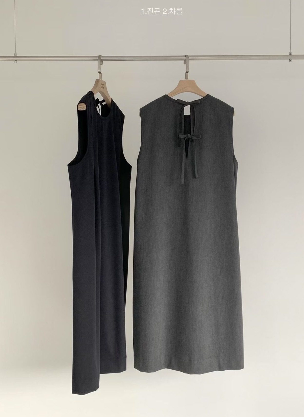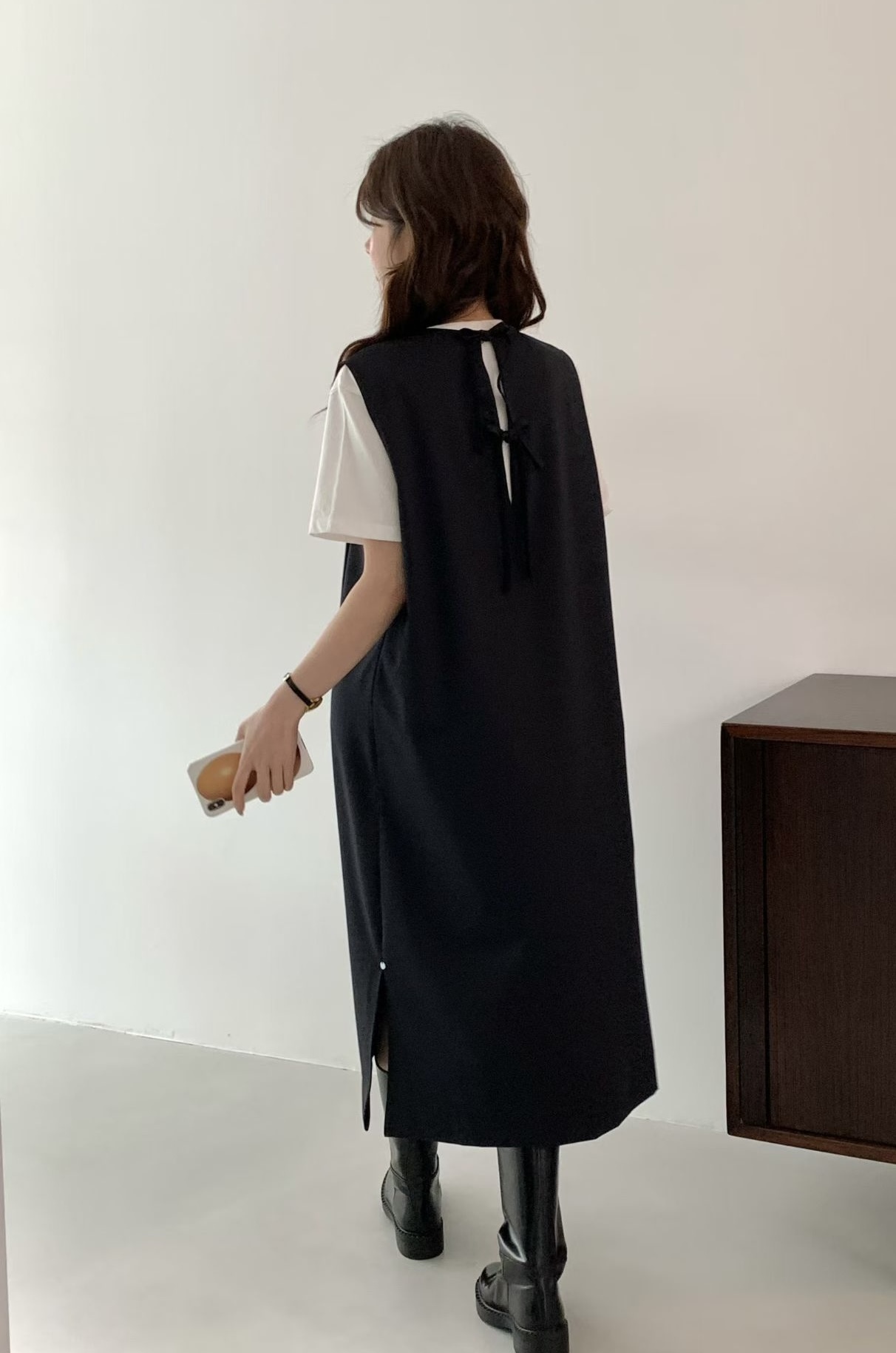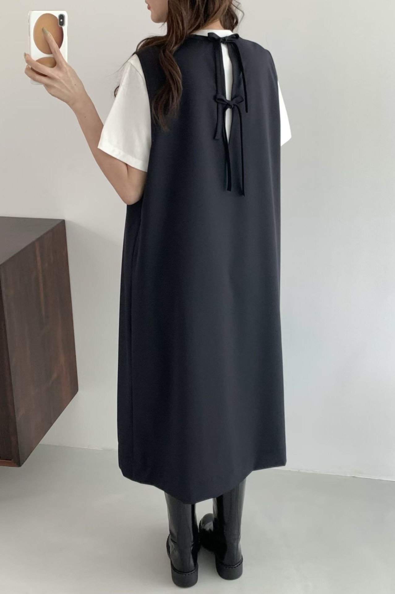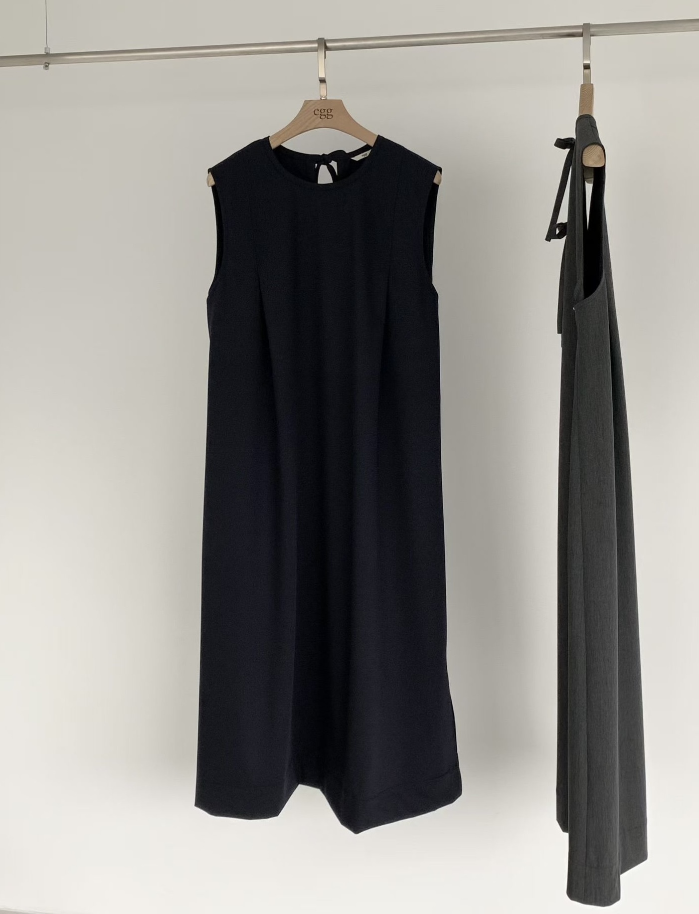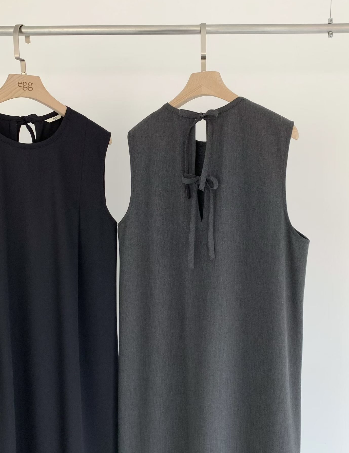 egg🥚 簡約氣質 後領蝴蝶結背心連身長洋裝