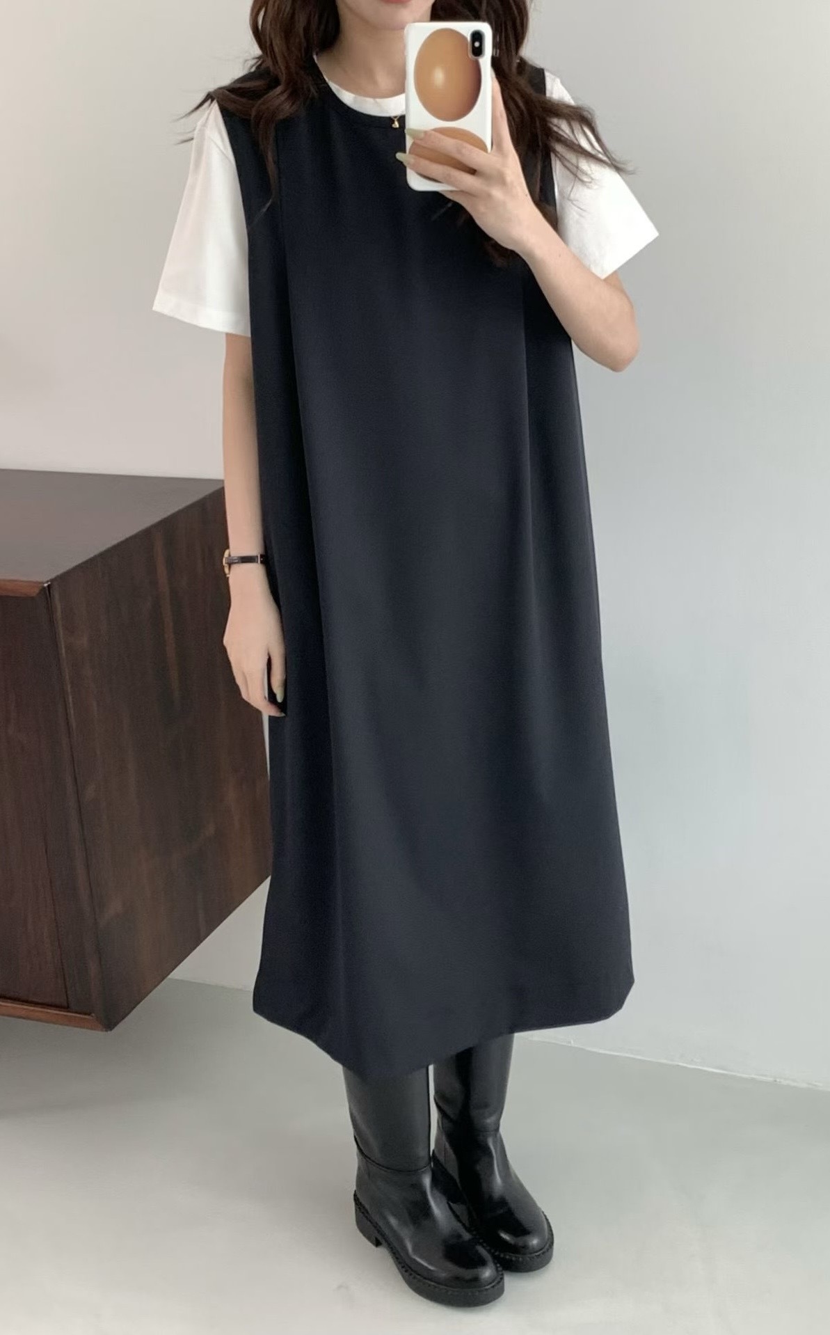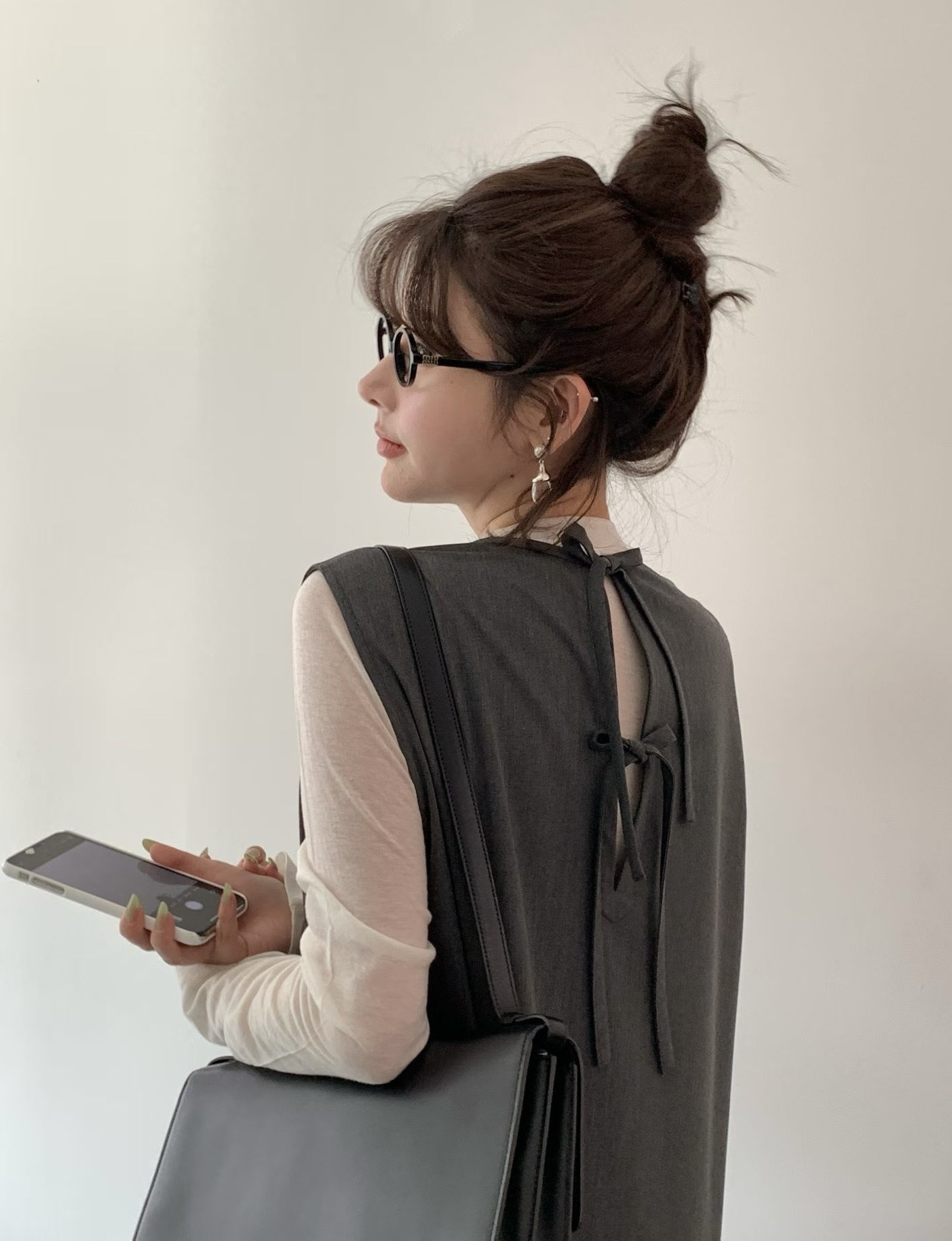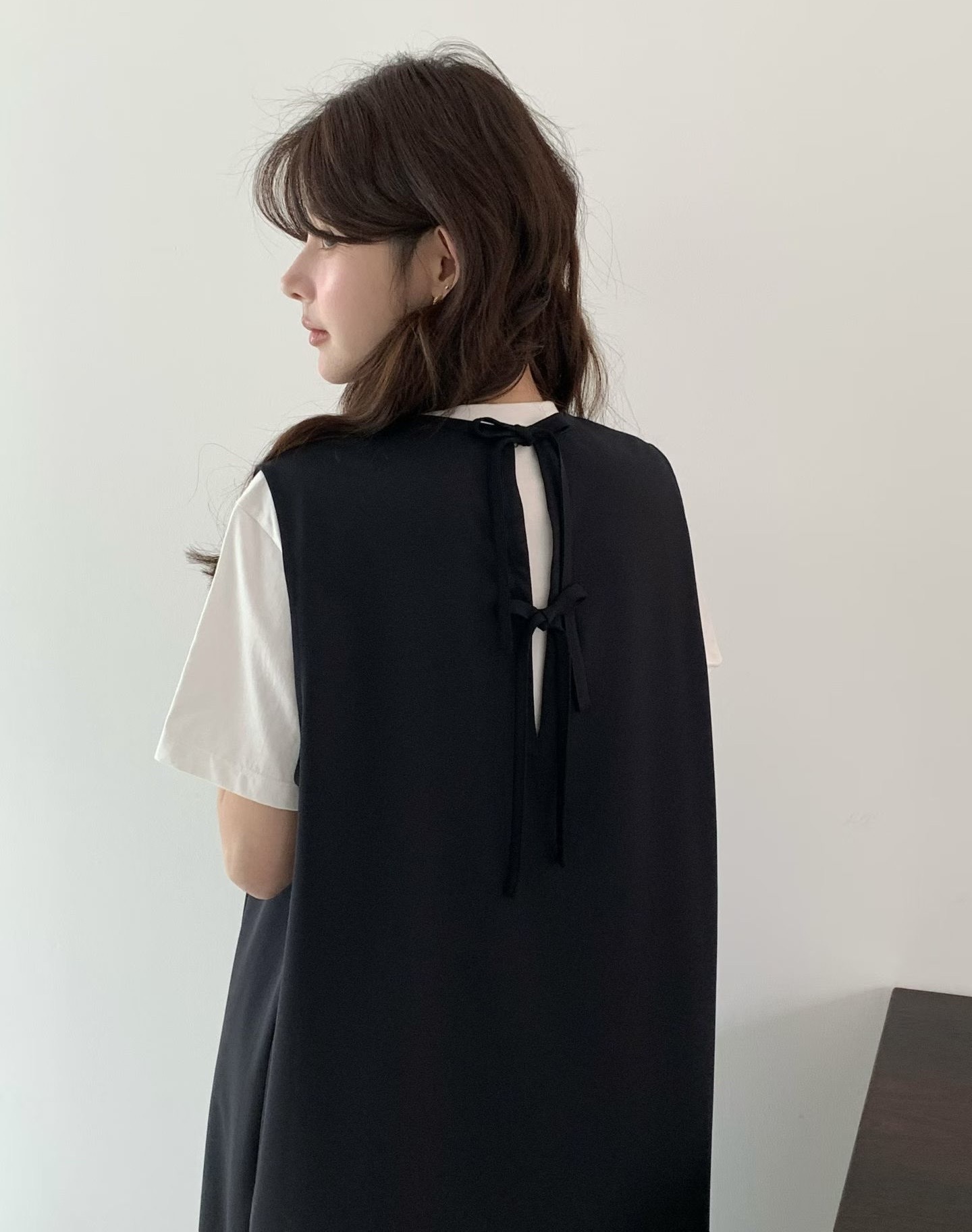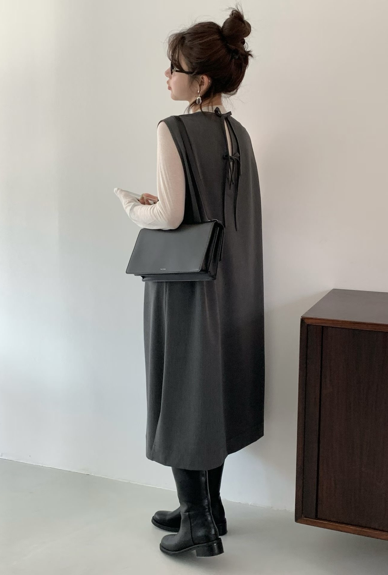 egg🥚 簡約氣質 後領蝴蝶結背心連身長洋裝