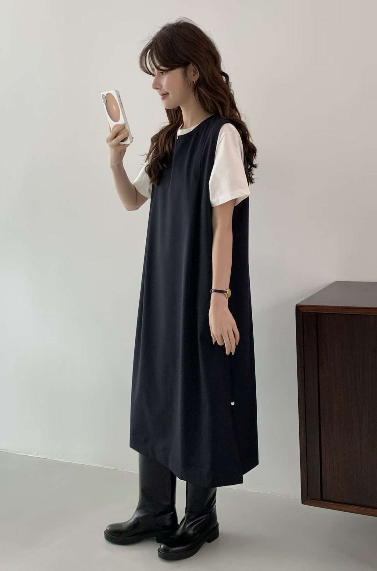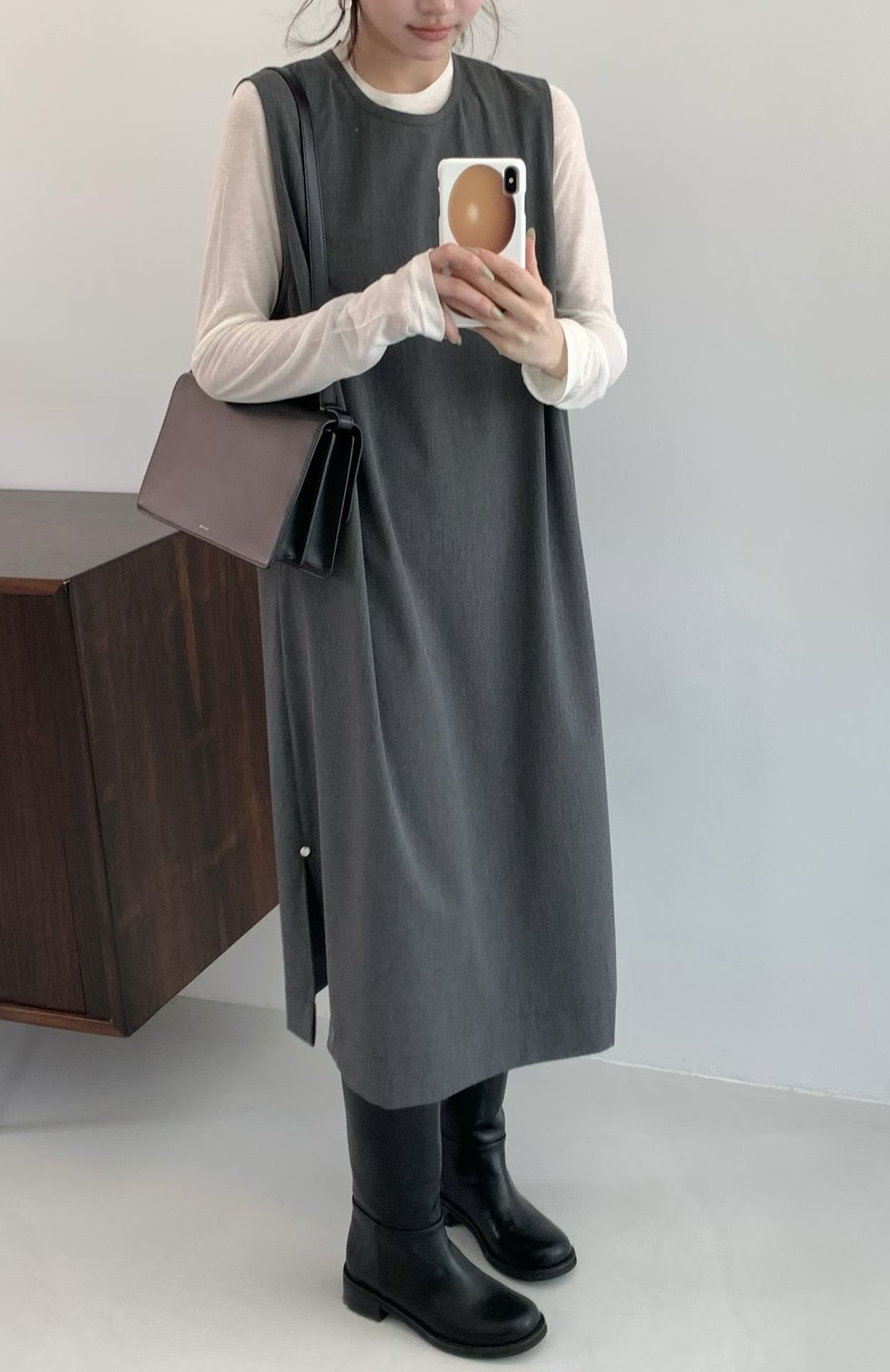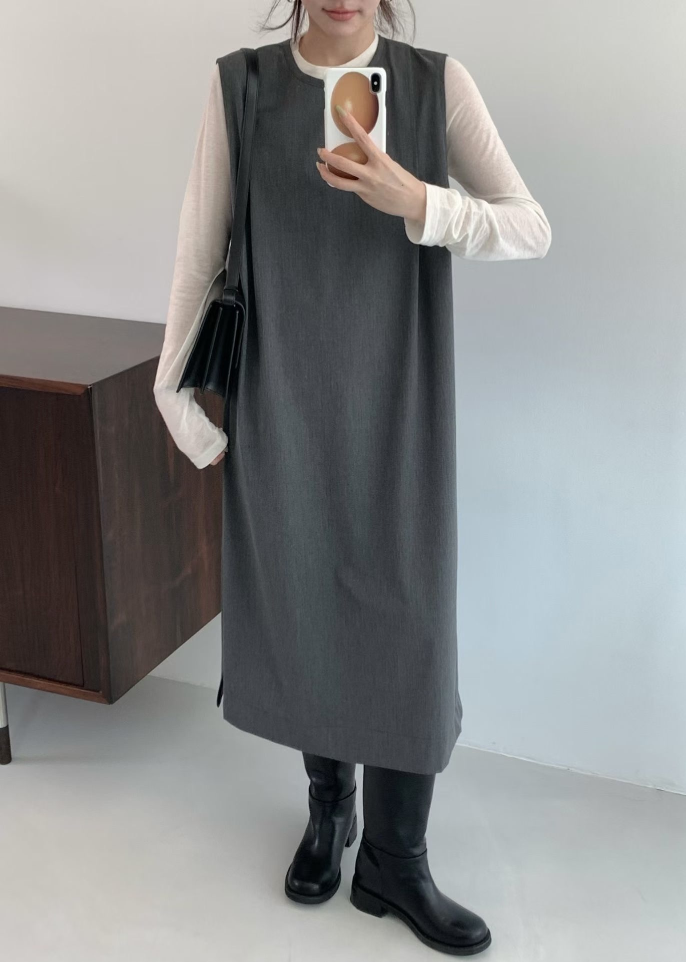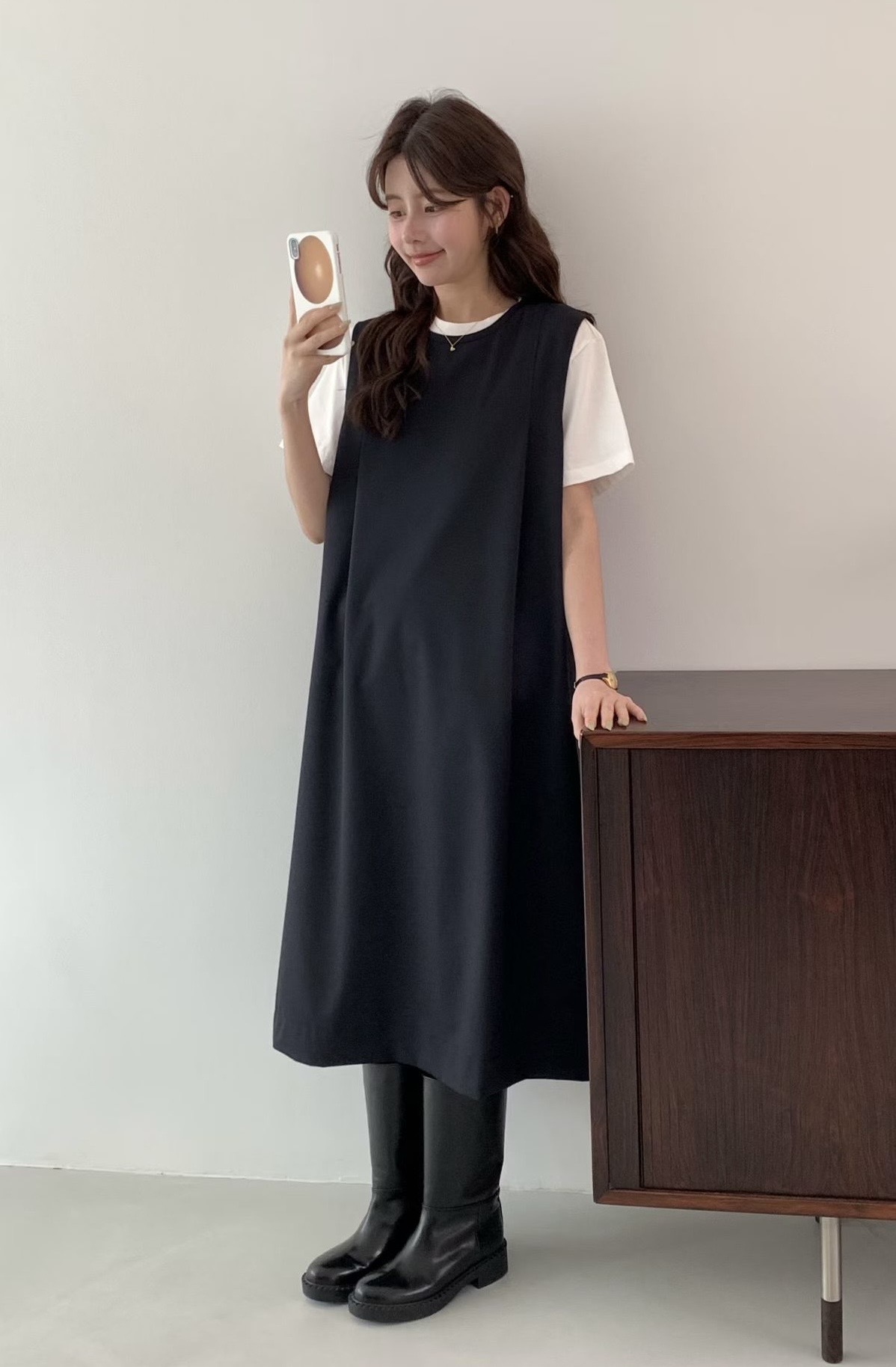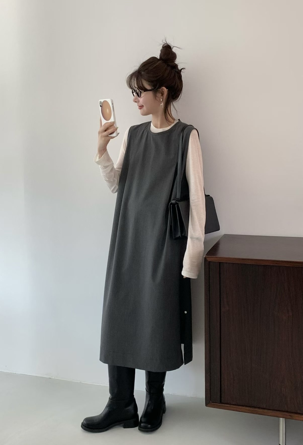 egg🥚 簡約氣質 後領蝴蝶結背心連身長洋裝