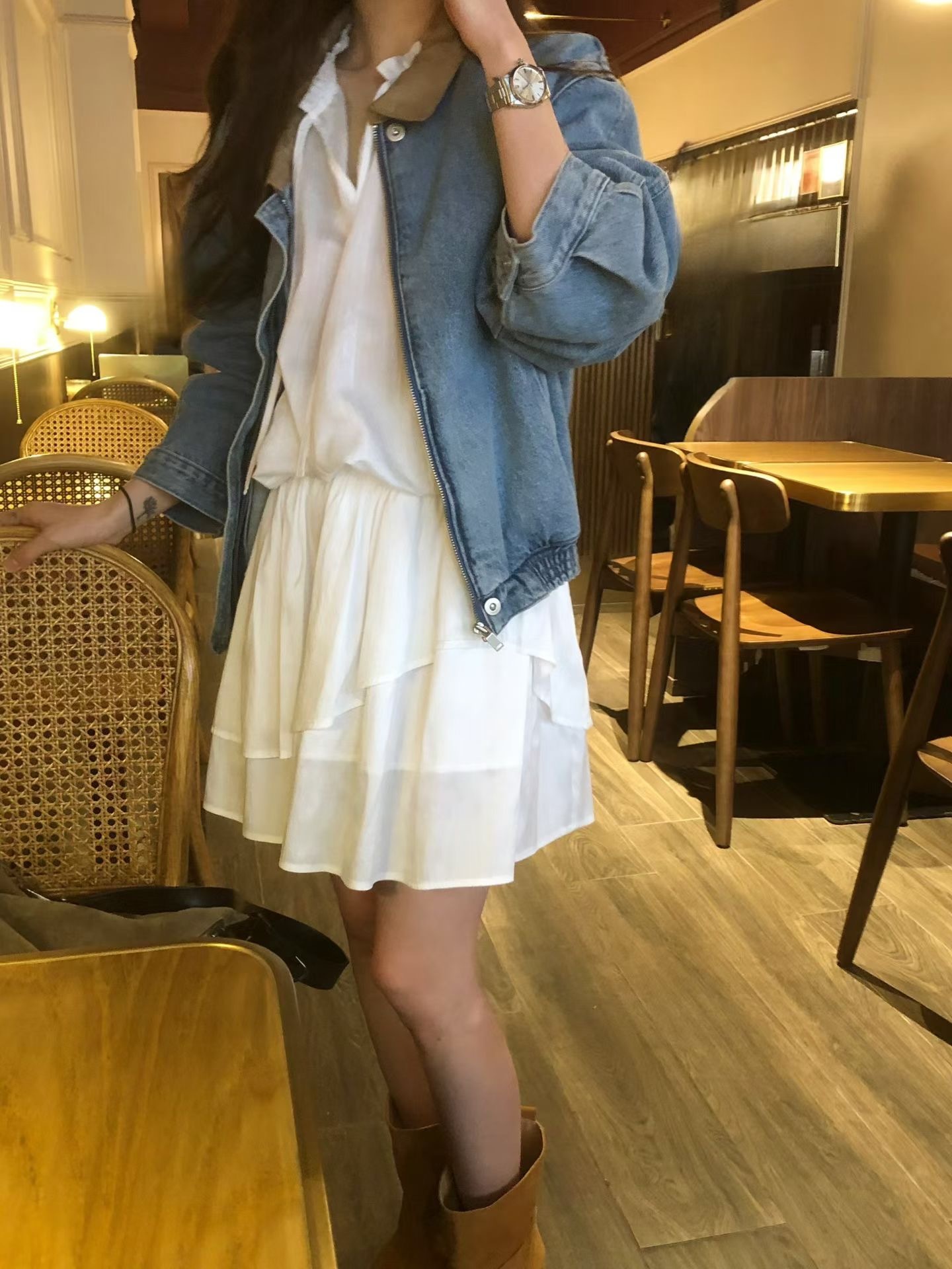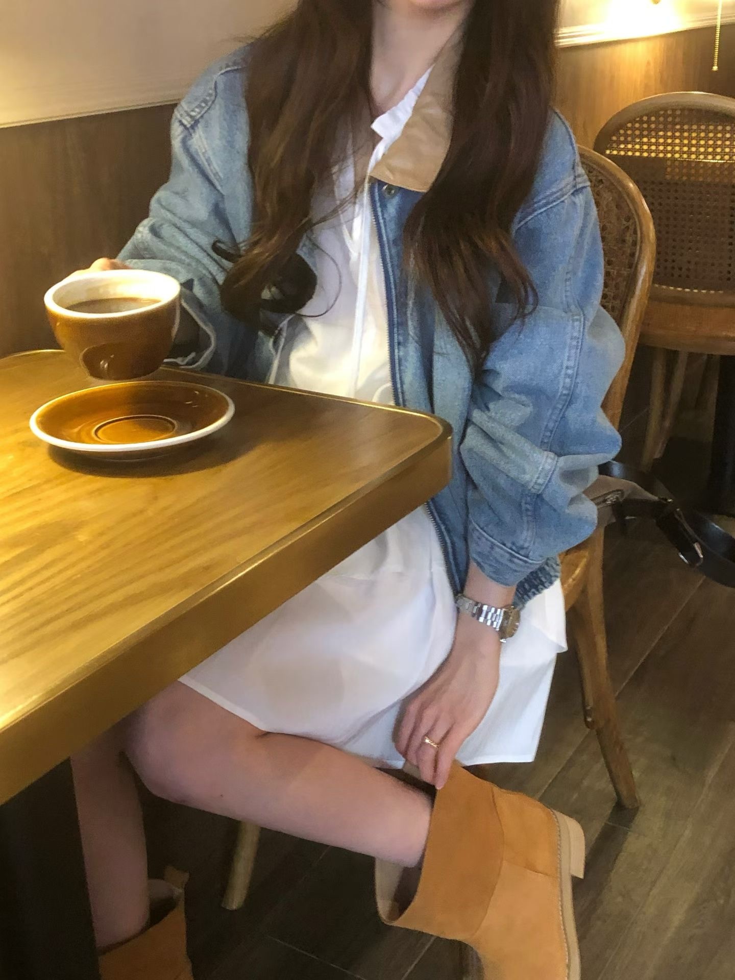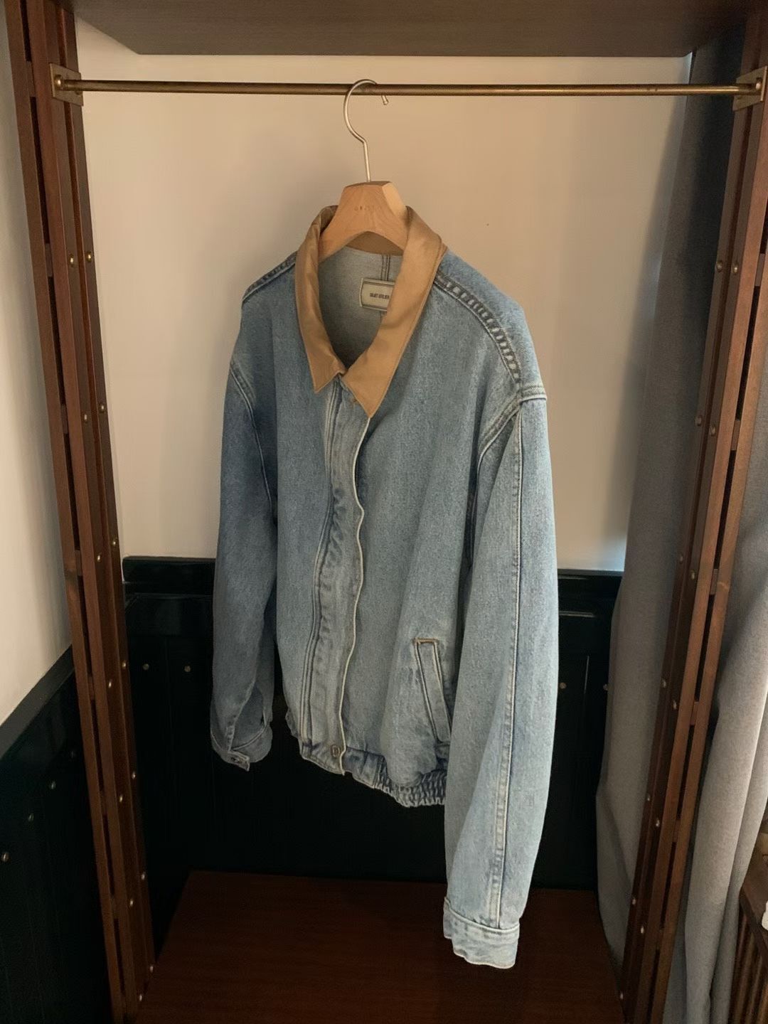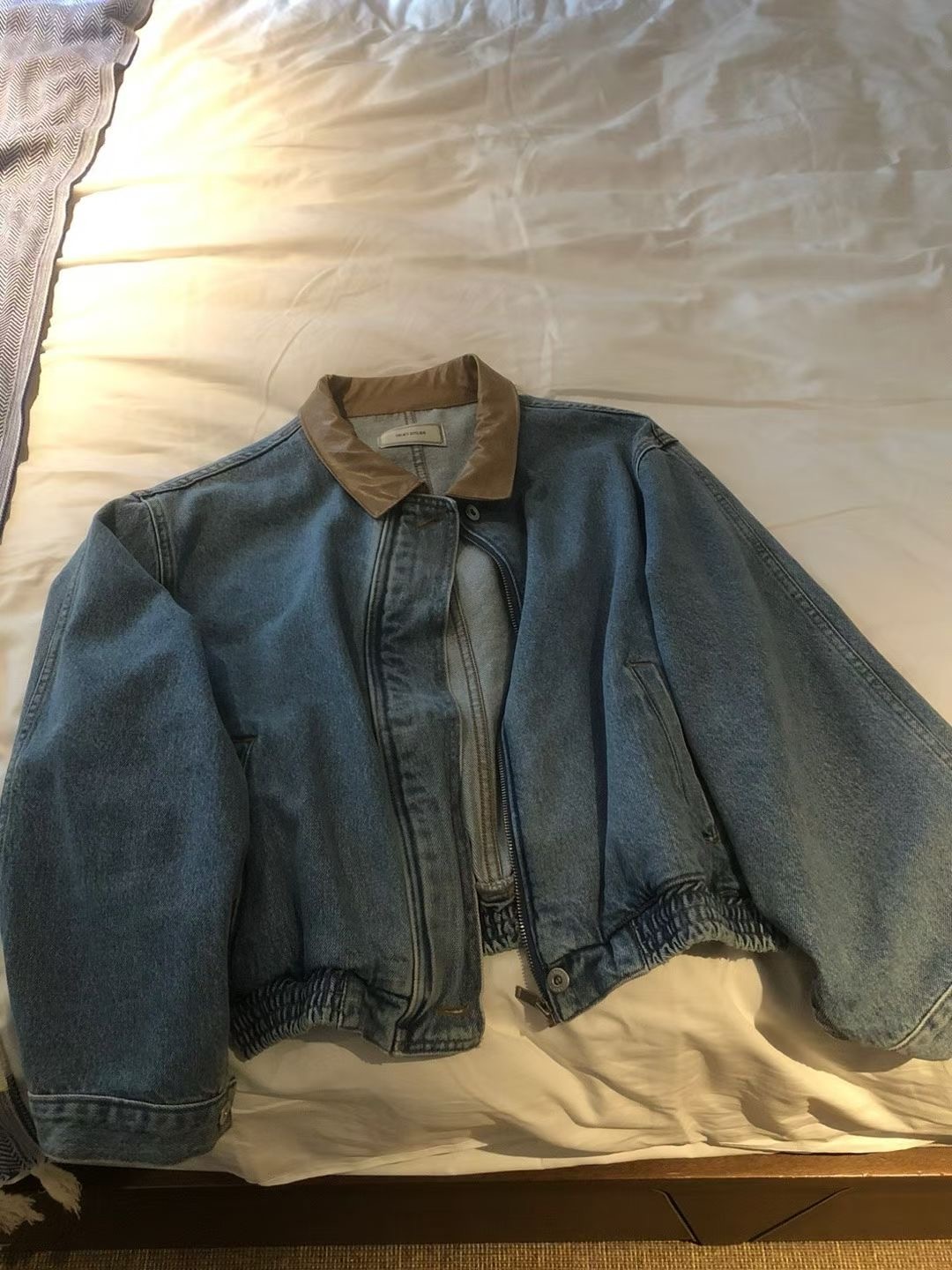 牛仔拼接PU皮領 手感軟軟的 不是那種硬硬的牛仔布 穿起來很舒服