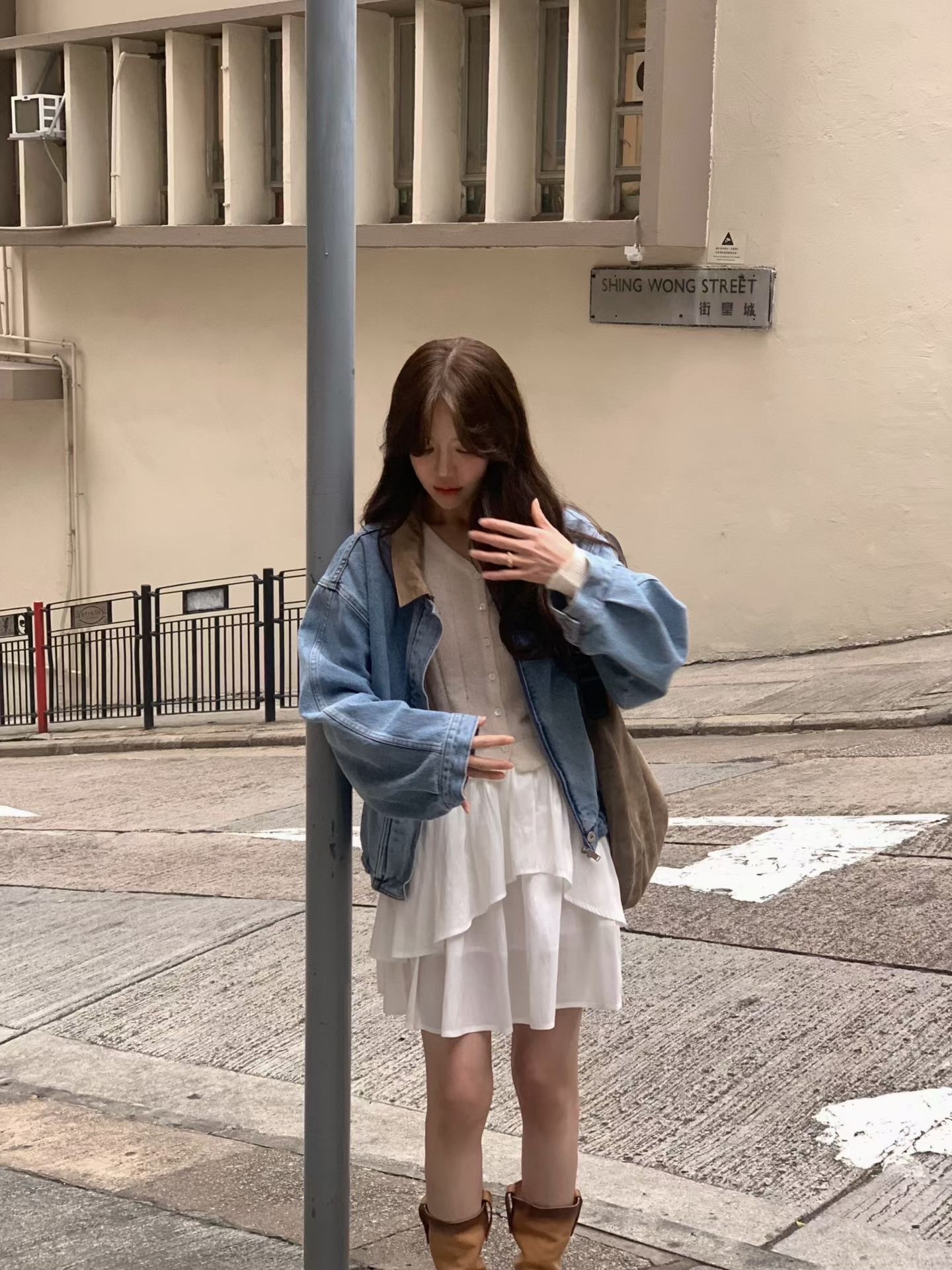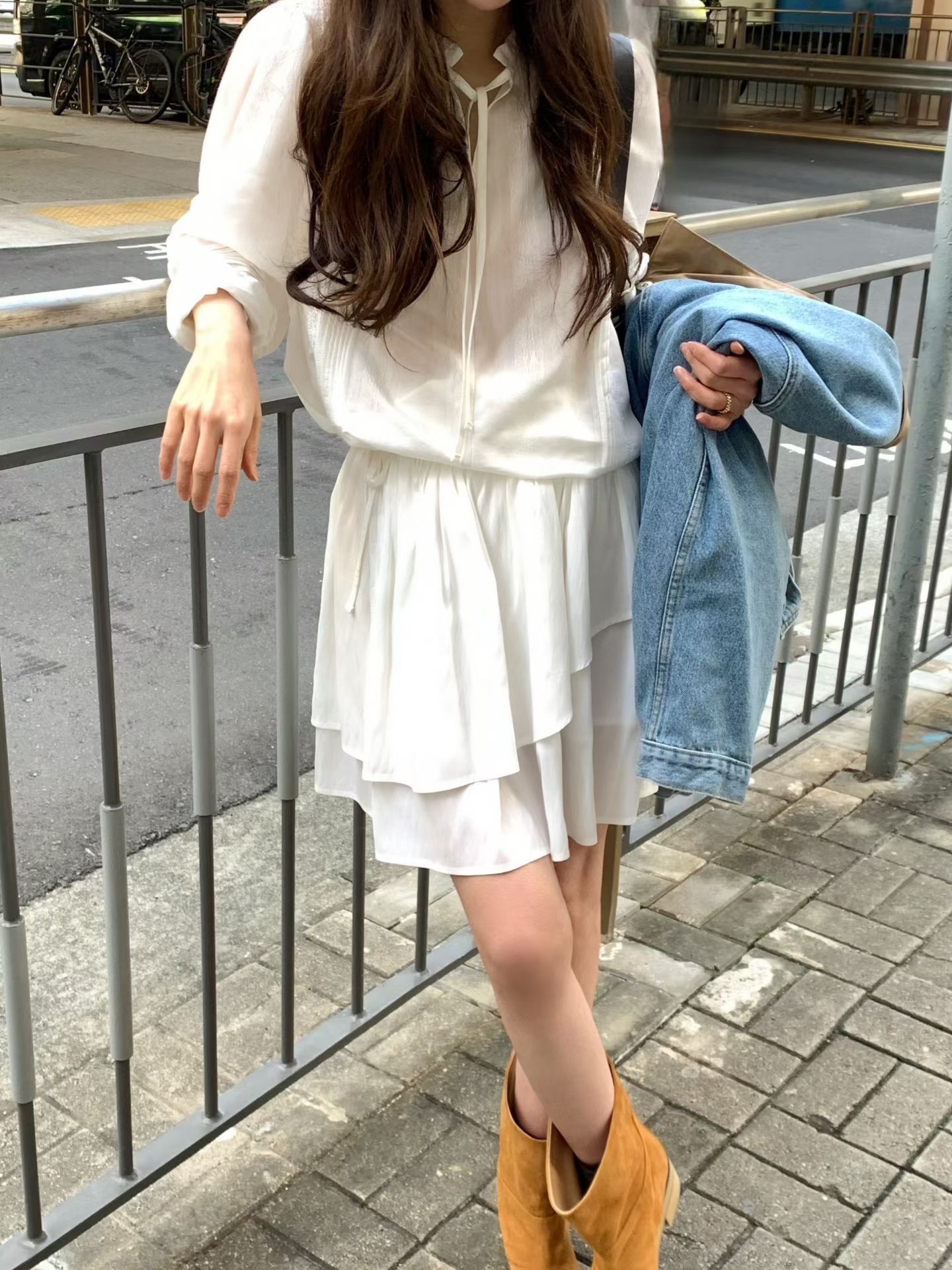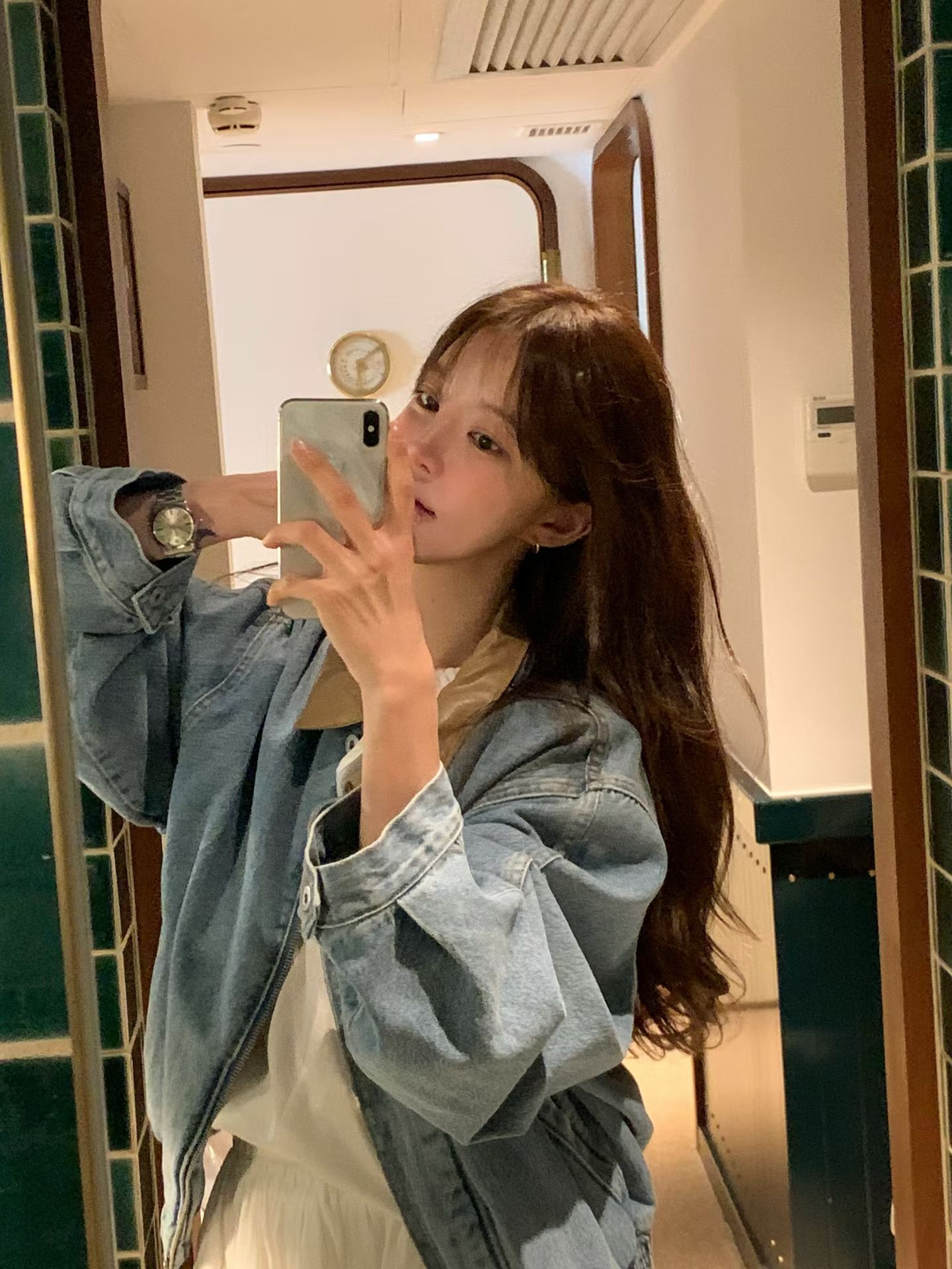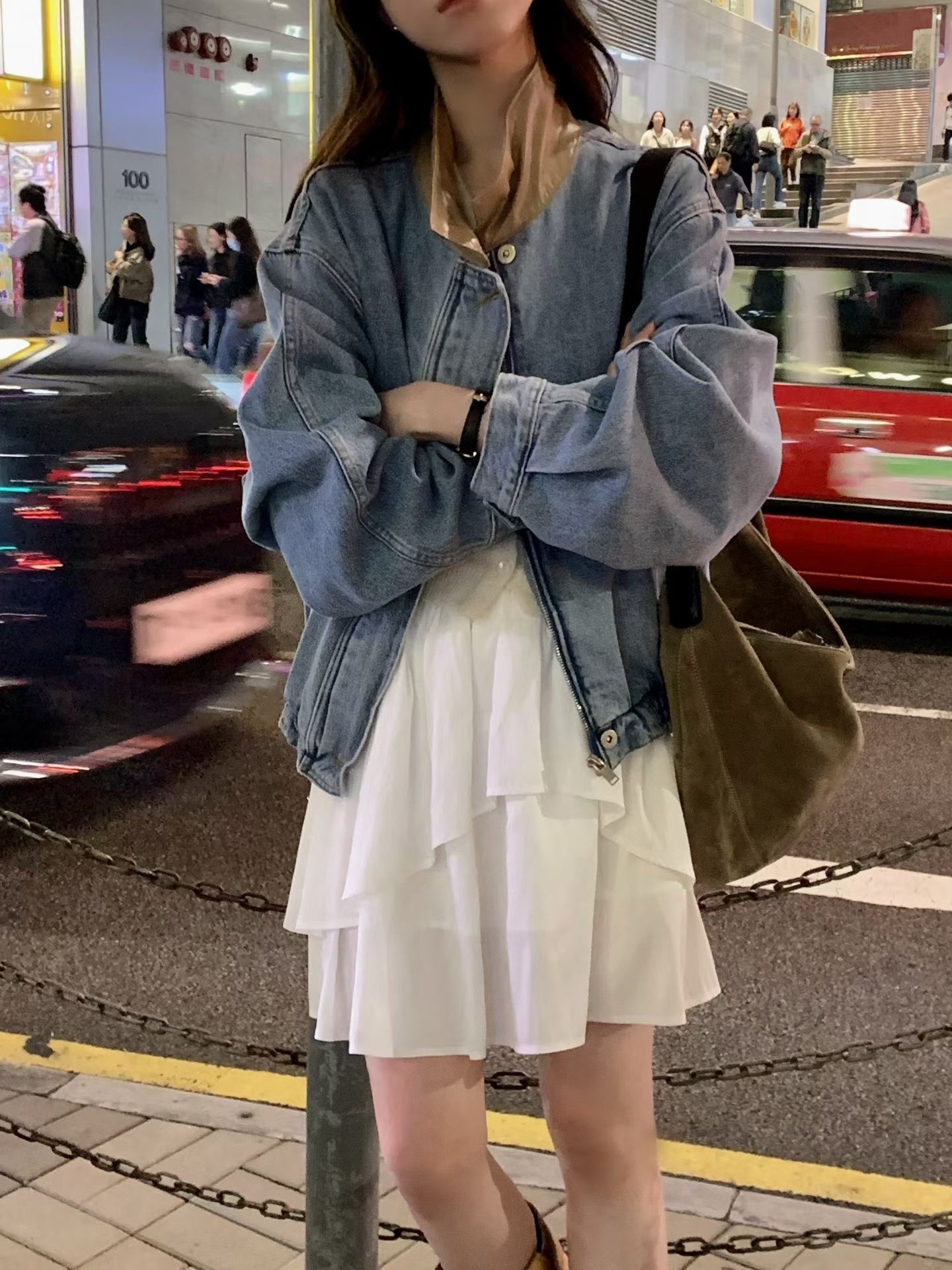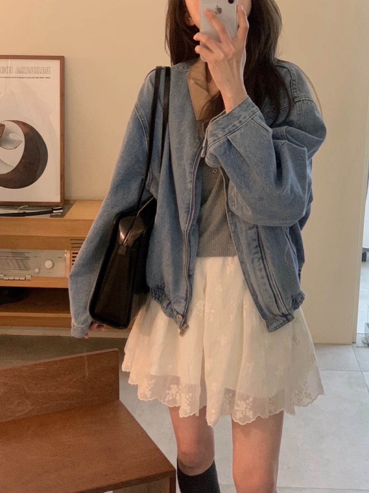 牛仔拼接PU皮領 手感軟軟的 不是那種硬硬的牛仔布 穿起來很舒服